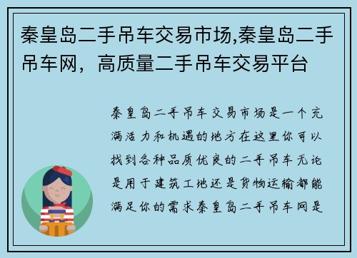 在西安这座古老而又充满活力的城市里,有一处神秘而又引人瞩目的地方,那就是西安二手吊车网。这个专业的二手吊车交易平台,如同一颗璀璨的明珠,闪耀着独特的光芒,吸引着无数眼球。 走进西安二手吊车网,仿佛置身于一个神秘而又充满机遇的世界。这里聚集了各种各样的二手吊车,从小巧灵巧的起重机到庞然大物的吊车,无所不包,应有尽有。每一辆吊车都有着自己的故事,曾经在工地上辛勤劳作,承载着重物,见证着建设的过程。现在...